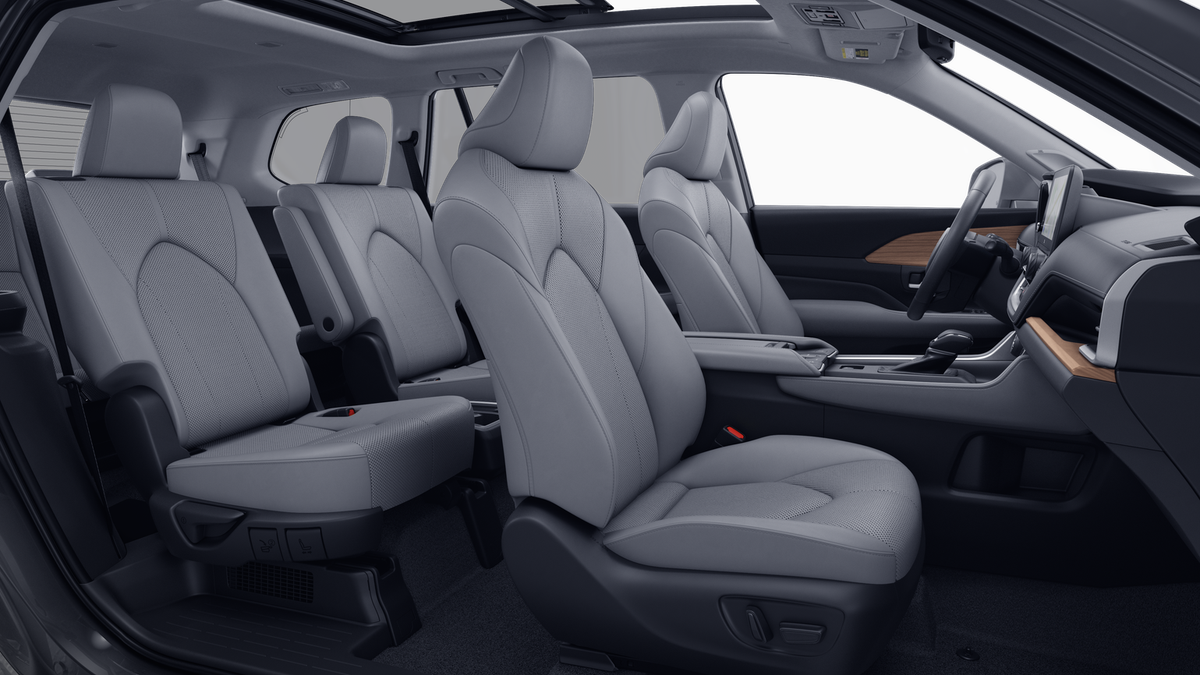 • 7-passenger seating with second-row fold-down captain's chairs and fold-down inboard armrests, adjustable headrests and two cup holders mounted on the floor; and 60/40 split, fold-down third-row seats with sliding headrests and recline function
